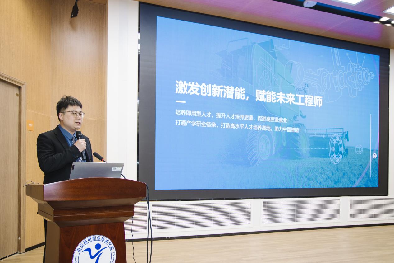 开幕式上,刁爱军系统介绍了学校在推动校企合作、深化产教融合、培养智能制造领域技能型人才等方面取得的丰硕成果。他表示,学校坚持打造智能制造专业集群,与三菱电梯共建江苏省首批现代产业学院;与大疆无人机共建市级产业学院;与华为共建ICT产业学院,现已成为全国职业院校中十二家领先级华为ICT学院之一(江苏唯一);与西门子公司共建江苏省首家L0L1级智能制造人才培养与认证基地;与罗克韦尔自动化共建智能制造协同创新中心,获企业捐赠3900余万元设备;与南京钢铁实施江苏省首批现场工程师联合培养;2024年由我校牵头研制的“南京号”八一08星成功入轨运行,项目入选教育部“长三角教育现代化”典型案例。