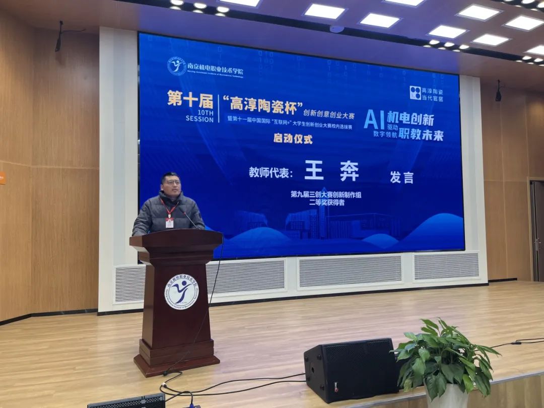 2025年3月18日,“AI驱动机电创新,数字领航职教未来”开元第十届“高淳陶瓷杯”创新创意创业大赛暨第十一届中国国际“互联网+”大学生创新创业大赛校内选拔赛启动仪式在乐学楼102报告厅举行。南京市高淳区科技局局长、科协主席马启顺,南京高淳高新技术产业开发区管理办公室分管负责人倪友谊,南京高等职业教育创新创业园发展服务中心主任吴凯,江苏高淳陶瓷股份有限公司党委副书记、副总经理周玉明,学校党委委员、副校长刁爱军等领导出席启动仪式。300余名师生代表参加活动,共同见证大赛开幕。