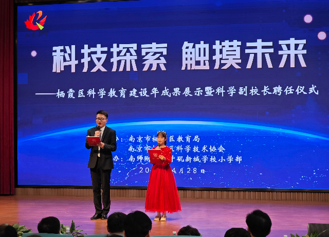 4月28日,南京市栖霞区科学教育建设年成果展示活动暨科学副校长聘任仪式在南师附中燕子矶新城学校小学部盛大举行。我校信息工程系、蓝岛创客空间主任王国珍被南京市栖霞区教育局聘为科学副校长对接南京市栖霞区实验小学,成为南京市首批科学副校长中的一员,这一殊荣为我校与地方基础教育领域的深度合作开启了崭新篇章。