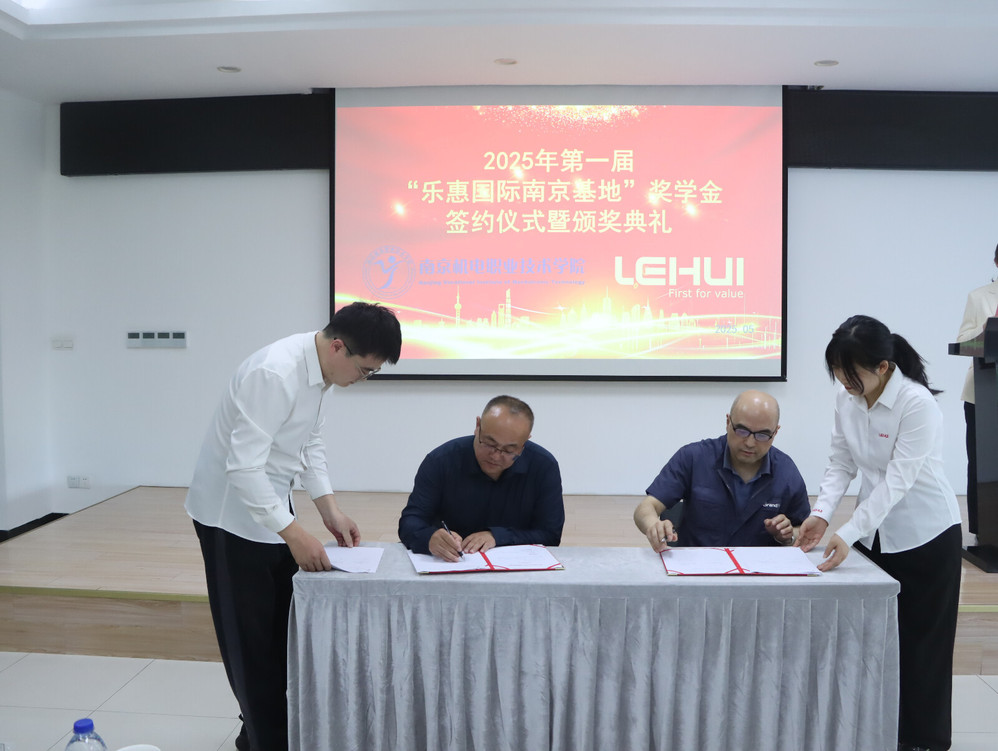 赵学洪与乐惠国际-南京保立隆包装机械有限公司副总经理孙琳共同签署奖学金协议。一笔一画间,校企合作的纽带更加紧密,标志着双方在人才培养、实践创新等领域的合作迈向新台阶,为学子搭建更广阔的成长平台。