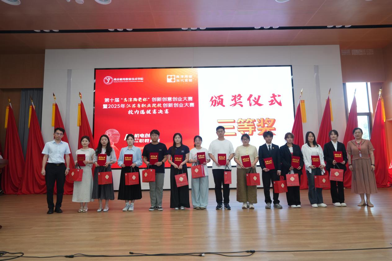 至此,第十届“高淳陶瓷杯”创新创意创业大赛暨2025年江苏省职业院校创新创业大赛校内选拔赛圆满落幕。今日赛场上的星火,正汇聚成明日产业变革的燎原之势。期待南机电师生承载着这份创新的荣光与责任,在未来的学习实践中锐意进取,再创辉煌,以不懈的探索与实践,共同书写中国式现代化征程中职业教育的璀璨华章。