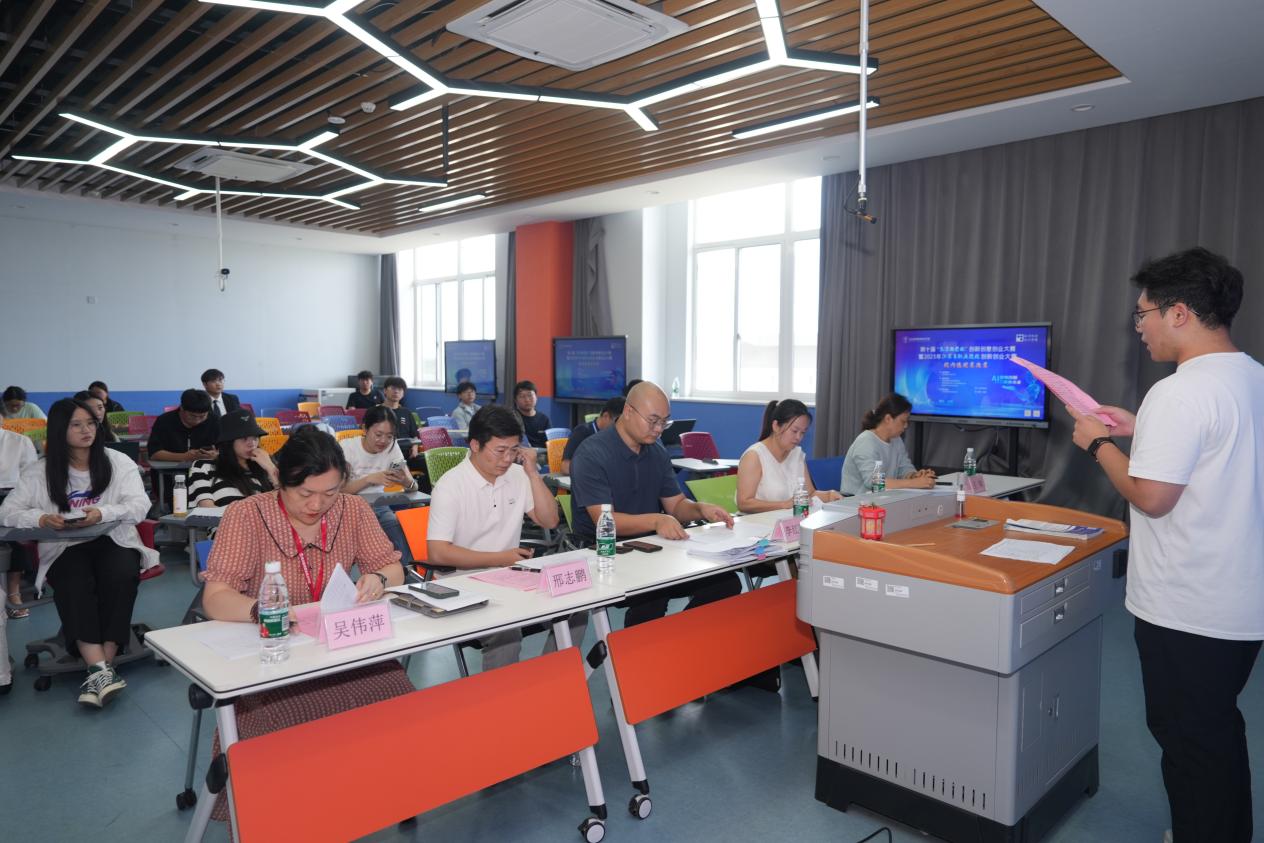 学校科研及校企合作处处长李木香宣读了本次大赛的评审结果。最终,《虚拟机器人仿真实验平台设计》等5件作品获一等奖,《“蟹酱”智能语音声控蟹灯》等15件作品获二等奖,《安心陪诊》等20件作品获三等奖,《国潮IP形象设计》等4个作品获单项奖。