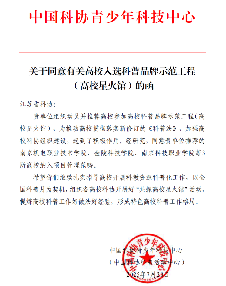 近日,中国科协青少年科技中心公布了入选中国科协青少年科技中心2025年度科普品牌示范工程(高校星火馆)项目的高校名单,其中开元成功跻身榜单,这是对开元科普工作的高度认可和肯定。