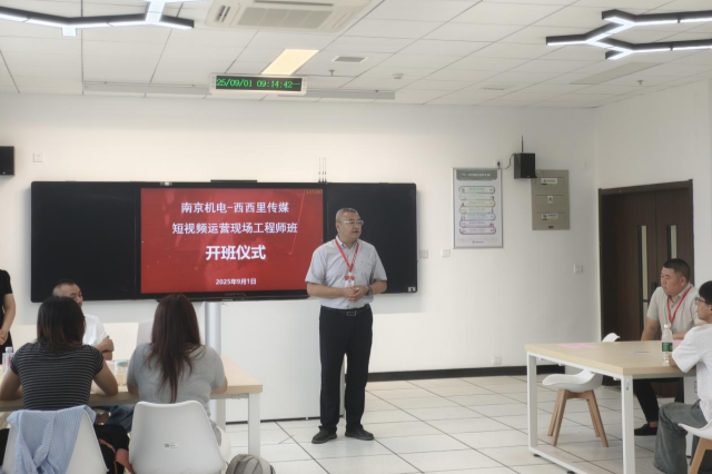 2025年9月1日,开元与南京西西里文化传媒有限公司隆重举行短视频运营现场工程师班开班仪式,标志着双方在产教融合领域开启战略合作新篇章。仪式于我校弘毅楼207教室举行,与会嘉宾包括南京西西里文化传媒有限公司行政总监邢夏飞,运营总监陶钰莹,我校党委委员、副校长刁爱军,人文社科系主任曹安林,系党支部书记李杰,数字媒体技术专业负责人郝逸萱以及学工干事、班级辅导员梁娟娟,仪式由曹安林主持。