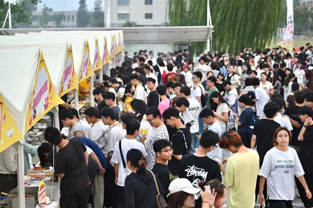 下午四点半,“感知高淳”游园会率先点燃了现场气氛。社团嘉年华活力四射,各高校社团使出浑身解数,展现了高职园蓬勃的青春力量。非遗匠心摊位,高淳羽毛扇、木雕、香包等非遗技艺让同学们流连忘返,引导学生们开启了一段独特的文化探索之旅。特色美食长廊人气爆棚,固城湖螃蟹等本土小吃香气四溢,新生们手持体验券,在味蕾上认识了高淳。科技互动区则酷炫十足,航模飞行、机器人展示等互动项目,让大家感受到了高淳“创新之城”的科技脉动。