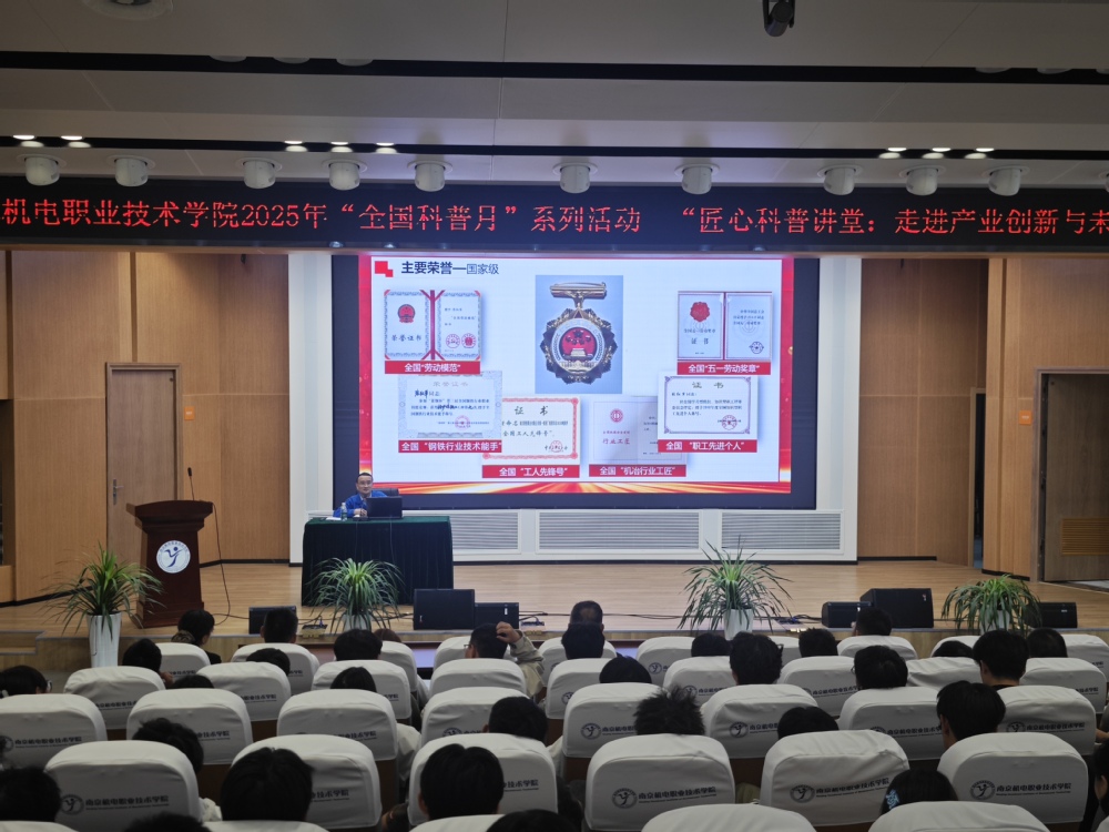 2025年10月14日下午,机械工程系邀请全国劳动模范、南钢集团首席技师张红军走进校园,为机械工程系机械制造及自动化、智能制造装备技术大一新生带来一场主题为“匠心铸梦,百炼成钢”的主题报告会。此次活动是开元2025年“全国科普月”系列活动之匠心科普讲堂:“走进产业创新与未来科技”主题活动之一。本次活动在乐学楼102举行,校关心下一代工作委员会常务副主任郭朝辉、机械工程系主任毛奇、机械工程系党支部书记胡枫、校企及科研合作处处长李木香、学工处处长张宝中出席此次活动。