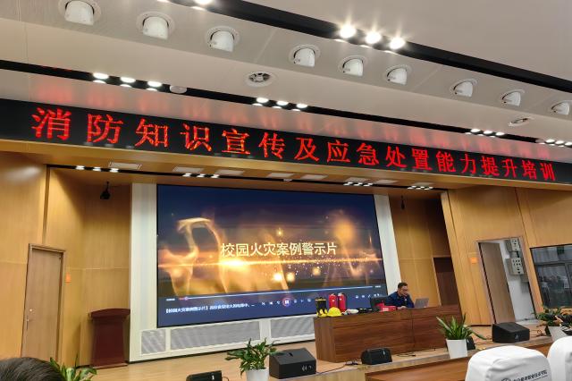 为进一步增强我校师生消防安全意识,提升消防应急能力,落实学校2023年消防安全宣传月工作部署,2023年11月10日,我校特别邀请高淳消防宣传科宋参谋在乐学楼报告厅开展消防知识宣传及应急处置能力提升培训。学校各部门安全员、专项安全员、安全消防控制室人员、微型消防站成员、物业、宿舍管理人员、安保、驻校经营单位安全员等120余人参加此次培训。