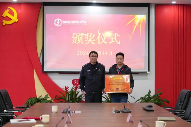 3月14日上午,南京市公安局内保支队副支队长张研来校颁奖并对我校安全稳定工作进行指导。