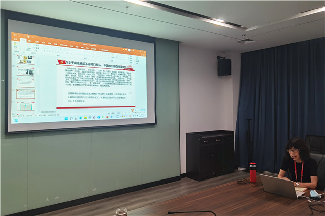 董老师分别从以下三个方面介绍了中国共产党一大召开的历程:第一,中国共产党的诞生;第二,党的纲领的确立;第三,中国共产党成立的伟大意义。通过本次解读“伟大的开端”,既凝固历史,又穿越时空,每一个参与学习的党员清晰感知到我们党从弱小到强大、从九死一生到蓬勃兴旺的奋斗历程,真切感悟“不忘初心、牢记使命、永远奋斗”的时代意义。