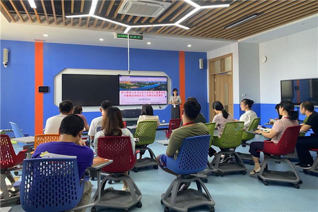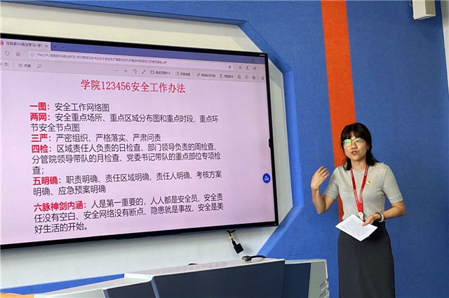 9月6日下午,信息工程系党支部“永远跟党走、迈向新征程”系列学习活动如期开展,由支部书记胡枫主持召开“学习贯彻习近平总书记关于安全生产重要论述,不断推动学校安全工作责任有效落实”学习会议,学习传达习近平总书记关于安全生产的重要论述和学校各项安全工作要求,部署贯彻落实工作,支部全体党员教师参加学习。
