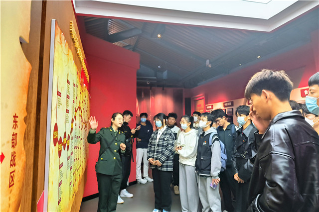 跟随讲解员的脚步,全体同学来到中国新四军历史研究馆。他们认真听仔细看,一幅幅照片、一个个物件、一段段故事,文字令人动容,故事感人至深,同学们在震撼中感悟到革命先辈身上无坚不摧的精神力量,也更加珍惜今天来之不易的幸福生活。