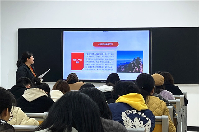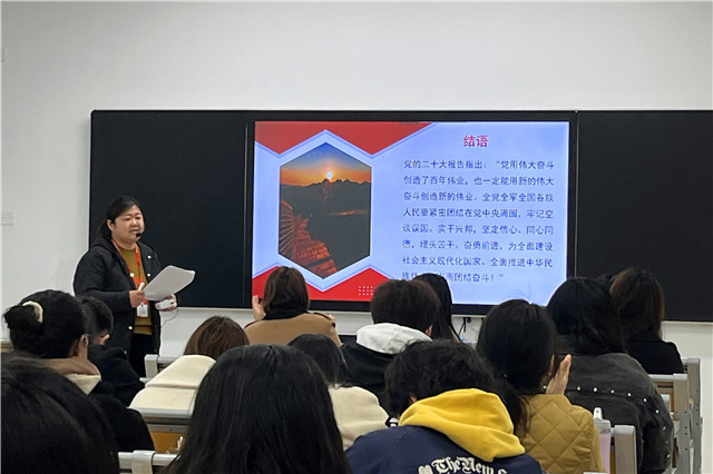 为学习贯彻党的二十大精神,营造奋进新征程的良好氛围,3月21日下午,人文社科系全体教职工在博学楼305教室开展了学习贯彻党的二十大精神系列学习会,本次学习由思政中心卢璇老师主讲,人文系全体教职工参加。