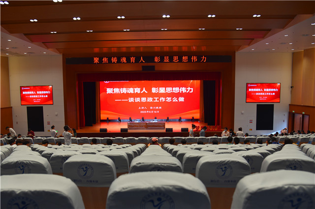 为深入学习贯彻党的二十大精神和习近平总书记在学校思想政治理论课教师座谈会上的重要讲话精神,进一步加强思想政治工作队伍建设,落实立德树人根本任务,5月16日,我校在青春剧场报告厅举办思想政治工作专题报告会,邀请党的十九大和党的二十大代表、全国最美教师、全国辅导员年度人物、南京航空航天大学马克思主义学院党委书记徐川教授为我校师生作报告。学校党委书记、院长周庆礼出席会议,党委副书记、纪委书记、副院长陈赵主持会议。学校人事处、学工处、思政课教师、辅导员以及专业带头人聆听了报告。