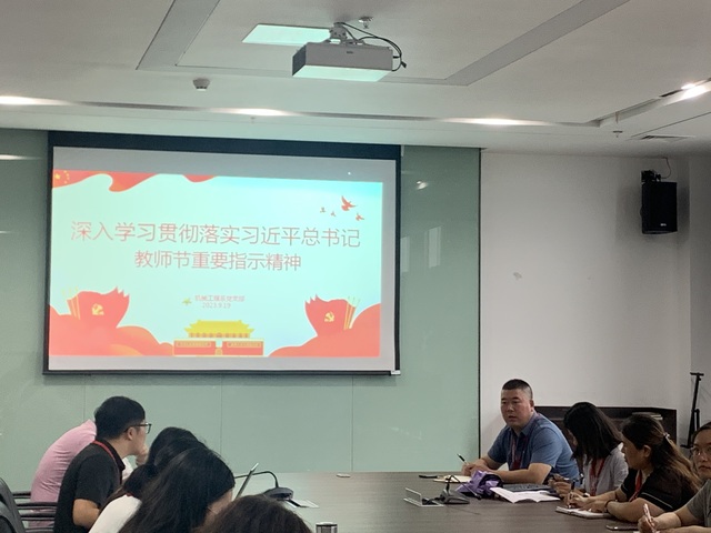 2023年9月19日,机械工程系党支部在育德楼303会议室,组织开展学习会议,深入学习贯彻落实习近平总书记教师节重要指示精神。机械工程系全体党员教师参加,会议由机械工程系党支部副书记李杰主持。