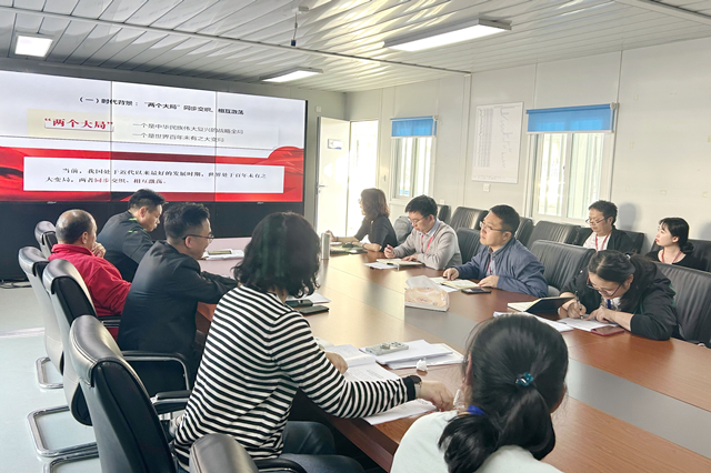 为推动党的二十大精神进基层党支部,引导广大党员干部群众不断在认识上有新收获、在觉悟上有新提高、在思想上有新升华,机关一支部于11月7日在项目部108会议室召开“贯彻二十大 奋进新征程”主题宣讲会,此次宣讲会特邀学校思政中心副主任、思想政治理论教育宣讲团成员董志鸿担任主讲。