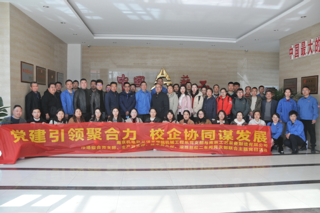 为进一步筑牢校企党建共建平台,纵深推进产学深度融合。2024年3月19日,学校党委副书记、副校长赵学洪带领机械工程系党支部全体教职工与南京工艺装备制造有限公司市场综合党支部、生产党支部、技术党支部、滚珠丝杠二车间党支部在南京工艺装备制造有限公司组织开展了以“党建引领聚合力,校企协同谋发展”的主题党日活动。南京工艺装备制造有限公司党委书记赵如平、纪委书记刘丽丽等出席活动。