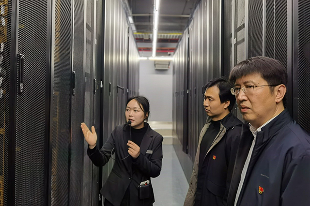 随后,大家来到了云计算中心的现场参观教学区。在工作人员的悉心讲解下,党员教师们详细了解了中国移动长三角(南京)云计算中心的基本情况。该中心作为华东地区单园区规模最大、建设标准最高的数据中心,不仅实现了首个5G全覆盖,还承载着腾讯、阿里、苏宁等大型互联网企业的全国数据节点。园区积极响应国家“东数西算”战略,通过地理优势,实现与上海、浙江等地的联动,并赋能长三角中西部区域的数字产业,为打造一体化算力网络、实现基础设施和算力调度能力的快速升级、促进产业链上下游产业融合等方面作出了巨大贡献。