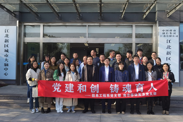 4月9日下午,信息工程系党支部全体党员教师怀着对党的深厚情感和对技术创新的热切追求,踏足江北新区,走进“中国移动长三角(南京)云计算中心”,与南京移动高淳分公司党支部共同开展了一场富有意义的“党建和创 铸魂育人”主题党日活动。此次活动旨在将党建工作与科技创新紧密结合,提升党员教师的政治觉悟和技术水平,同时铸造坚定的理想信念,培育新时代的优秀教育人才。