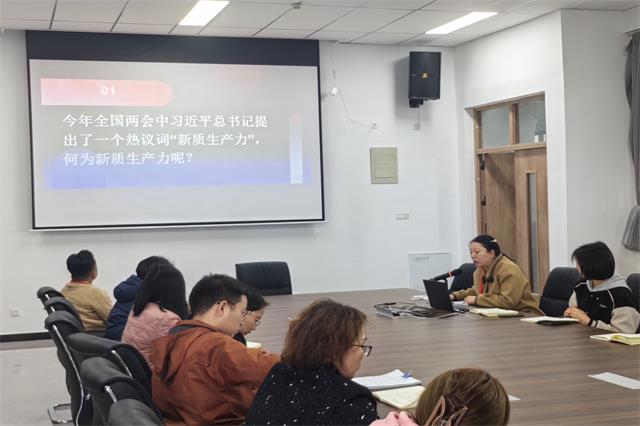 陈雪从新质生产力的内涵和特征、构成要素、发展现状与趋势、实践与案例、政策与措施建议进行阐述,重点传达学习了两会期间习近平总书记重要讲话精神,政府工作报告的主要内容特别是关于教育的工作部署。