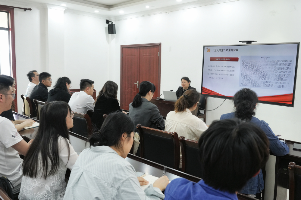 5月10日,机关一支部邀请中共溧阳市委党校副校长、新四军江南指挥部纪念馆馆长兼党支部书记张燕为全体党员上“三大法宝——浅析新四军铁的纪律的时代意义”为主题的廉政党课。课程通过陈毅给良团信中“三大法宝”的解读,体现传承新四军铁的纪律的现实意义,强化组织纪律教育,结合《中国共产党纪律处分条例》,强调廉洁自律作风。