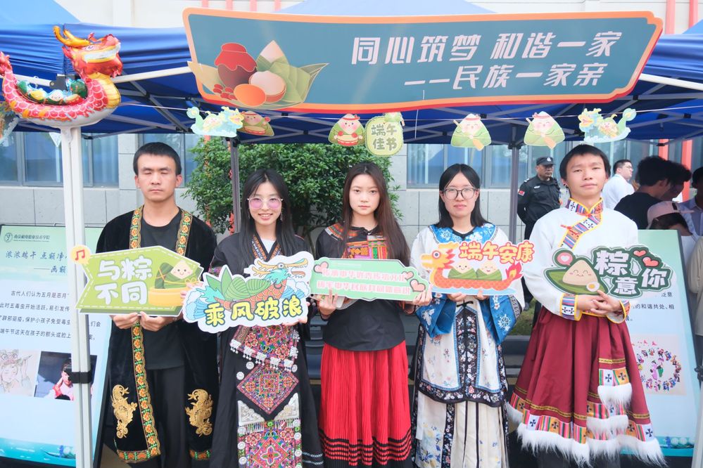 当日,在育德楼313会议室举行了“悦读南京话发展· 寄情端午暖侨心”文化交流座谈会,助推学校发展与区域治理有机融合,凝聚共建力量。下午,在学生公寓润思生活服务站广场开展“同心向党庆端午,民族团结一家亲”端午节系列活动,全方位向全校师生展示端午文化。在善学楼同步开展了“同心共筑红石榴 搭建平台促就业——‘红石榴行动’招聘会”,助力少数民族学生高质量就业。