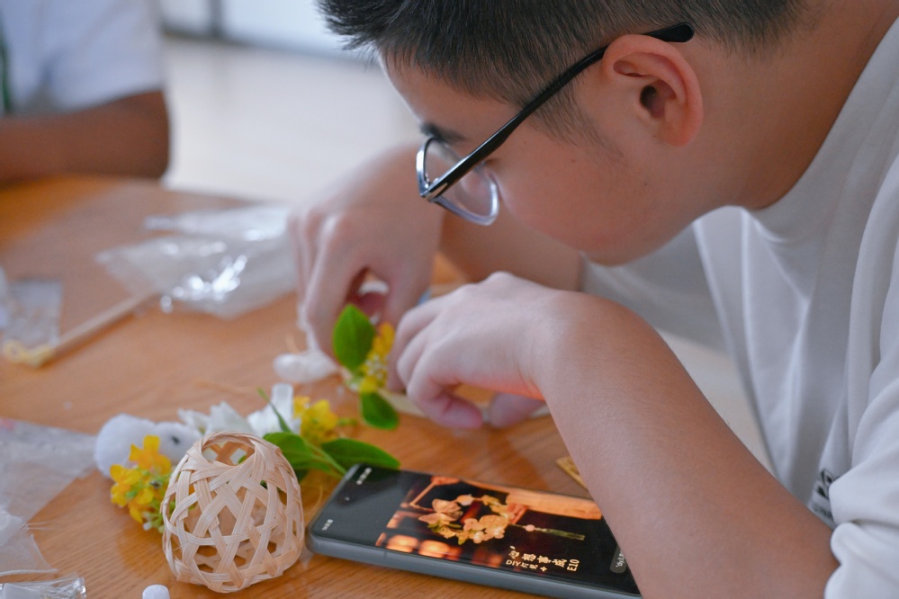 灯光摇曳,万家团圆,我国自古以来就有中秋赏灯的习俗。花灯选取圆环为基,坠以金桂,制作一盏兔子花灯,需要同学们细心粘贴装饰……当盏盏花灯装饰完毕,手执展示,不仅为自己点燃了温暖的希望,更为节日增添的喜庆氛围。其中不仅有兔子花灯,莲花灯也点缀其间,化莲灯入水为手执。当夜幕降临时,一盏盏花灯被点亮,与皎洁的月光交相辉映,为校园增添了几分诗意与浪漫,也寄予了我们对美好未来的期望。