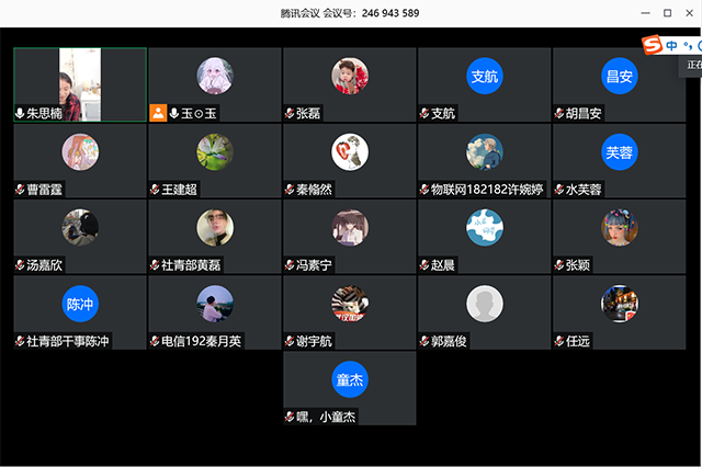 为给南机电青协选取下一届的新生力量,2020年7月1日青年志愿者协会举行了优秀志愿者表彰暨换届选举。由于疫情原因,大一的志愿者们无法返校,所以此次的选举采用线上腾讯会议的形式,青协指导老师、会长、副会长以及各个部门部长、副部长齐聚知行楼211,开展此次会议。