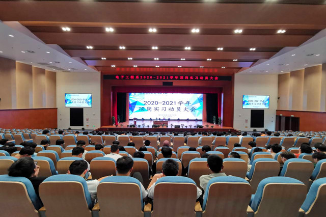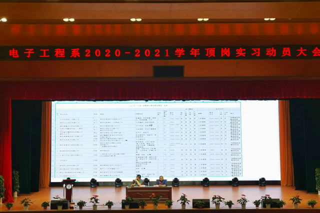 为促进2019级学生顶岗实习工作的顺利开展,强化实习管理,让学生进一步明确顶岗实习的意义,引导学生做好顶岗实习的心理准备,确保实习质量,5月18日下午4点15分,电子工程系在学院报告厅召开了2019级顶岗实习动员大会。出席本次会议的有电子工程系主任杨春雷、副主任闫文娟、学工干事朱新文及全体辅导员。本次会议由朱新文老师主持。