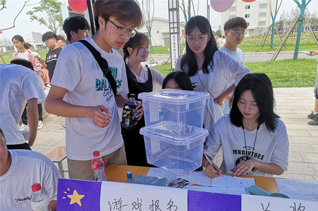 电子系心理气象站在游园会中承担了三个游戏环节,分别是“吸管运输”、“你划我猜”、“气球接力”。同学们可以自由选择一个或几个活动参加,参与后会获得相应的积分,最后根据积分兑换奖品。电子系心理气象站给参与活动的同学准备了丰厚的奖品,有水杯、台灯、笔记本、收纳盒等等。这些游戏看似十分简单,却非常考验参与者的默契值与配合度。