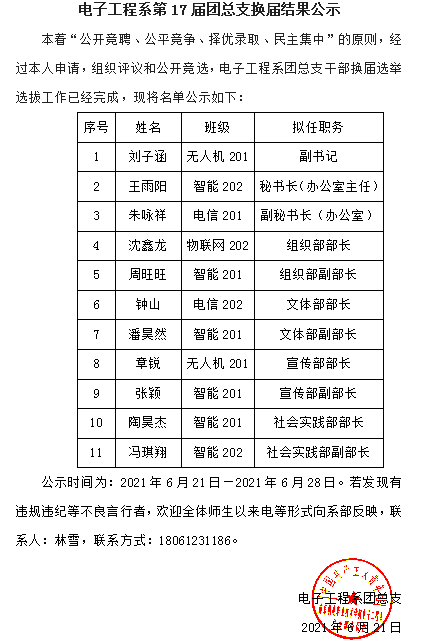 电子工程系第17届团总支换届结果公示