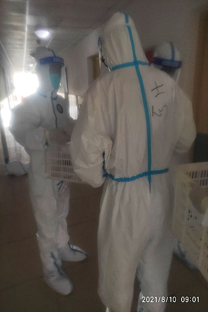 王康,应用电子技术202班:在南京江宁区隔离点做志愿者,为隔离人群送饭。火热的夏天,厚重的防护服下,是炽热的真心,疫情虽然来势汹涌,但仍旧挡不住我们抗击疫情的决心,胜利必定属于我们,加油南京!!