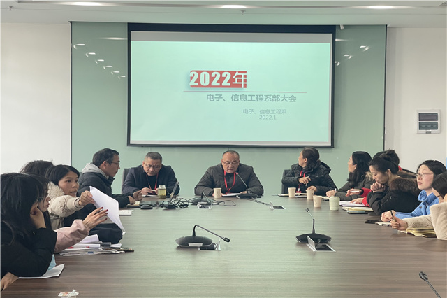 2022年1月12日,电子工程系召开本学期系部总结会,会议由赵院长主持。首先赵院长表示电子工程系工作卓有成效,代表学校领导班子向全体员工表示衷心的感谢。搬迁到高淳校区即将迎来一周年,学校一直加快建设步伐,积极改善师生的环境。
