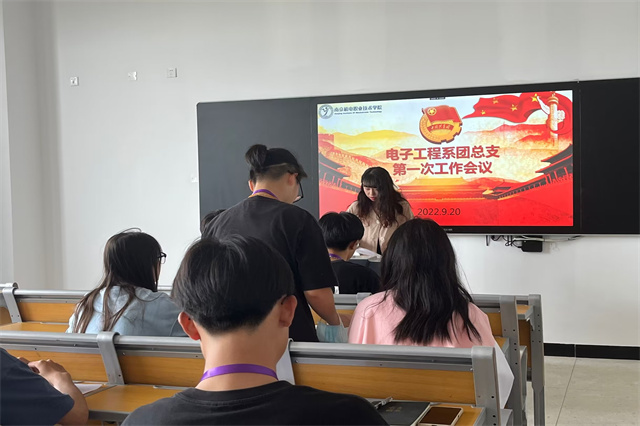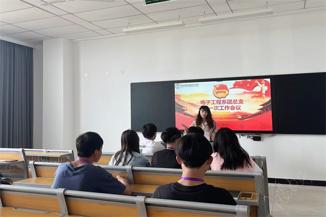 2022年9月20日下午14::00,电子工程系团总支召开了新学期第一次全体会议。团总支书记林雪老师以及新一届团总支干部出席了本次会议。本次会议的内容是由团总支书记林雪老师对我系新一届学生干部进行培训和指点,主要分配了各部门近期的工作内容。