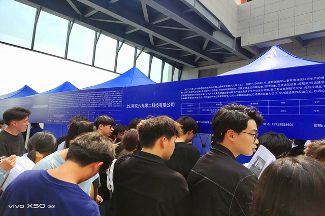 本次来参加招聘会的单位有:江苏屹信航天科技有限公司、北京航天微电科技有限公司南京分公司、南京熊猫汉达科技有限公司、南京六九零二科技有限公司、中国电子科技集团公司第五十五研究所等近二十家单位和电子工程长期保持合作。招聘会上,同学们积极参加现场企业招聘活动。通过面对面的交流,同学们可以对企业有更深层次的了解,沟通更全面,为今后的就业打下良好基础。同时,电子工程系主任姚小冬、电子工程系党支部副书记唐钰峤、电子工程系副主任丁向琴带领专业负责人在现场积极对接相关企业,为电子工程系的学生就业(实习)开拓校企合作新范围,同时为专业建设进一步拓展多层次、多形式、多领域的合作。
