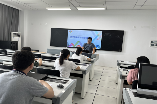 物联网技术应用教研室所有成员在系部前期课程思政工作的部署下,贯彻《高等学校课程思政建设指导纲要》、《开元“课程思政”建设实施方案(2021年-2023年)》等文件精神,认真书写了课程思政教学方案设计文档,制作了汇报PPT。所有成员分别对《单片机技术与应用》《C语言程序设计》《传感网应用开发》《通信产品设计与开发》《焊接与装配》课程进行了课程思政实施情况说课,说课内容主要围绕教学分析、课程思政设计思路、课程思政教育内容、教学实施、教学成效与反思、教学案例等方面展开。