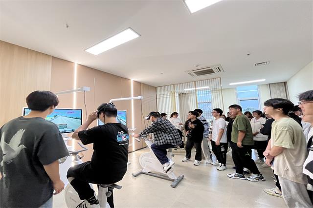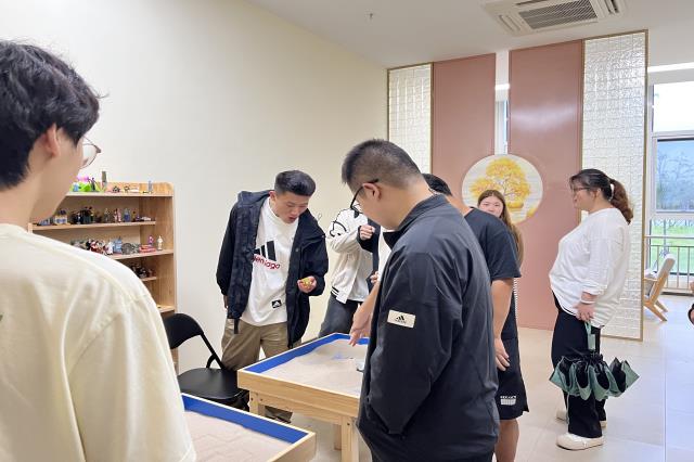 大学生健康成长中心主要设有预约接待室、自主调节室、个体咨询室、团体辅导室、音乐放松室、沙盘游戏室等多间不同功能的房间。首先,带领新生参观的是预约接待室,预约接待室是同学们进入中心的第一站。这里可以向值班的同学或老师进行心理咨询预约;在自主调节室内有两辆VR动感单车,在锻炼身体的同时,通过不同的VR模拟的骑行场景,来缓解心理的紧张和焦虑;团体辅导室是进行心理团体活动和训练的场所,在心理老师的引导下,通过团体成员之间的互动,促使个体认识、觉察、体验、接纳自我,调整和改善人际关系和行为方式等;沙盘游戏室是老师和同学通过沙盘游戏寻找心理问题原因的功能室,以游戏的方式呈现其内心的人际互动,进而帮助学生了解内心情感与情绪的真实状况;在情绪宣泄室中,通过击打和呐喊的方式可以有效地宣泄来访者焦虑、紧张、自卑等不良情绪,引导来访者重获理性平和、积极向上的心态,进而帮助来访者建立自信。除了各种功能室以外,在走廊的过道还设两面活动墙,是我校历届举办的团建、活动的合影介绍,有利于新生对大学生健康成长中心有更加全方位的了解和认识。