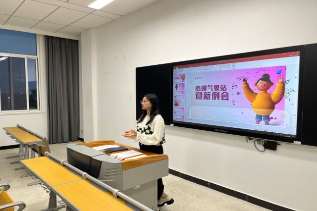 例会上,慧慧首先介绍了心理气象站的基本情况,她表示该气象站隶属于系部学生会,是协助校心理中心老师通过心理咨询面对面,校园心理知识现场解答等方式来帮助同学解决心理困惑,传播心理健康知识的一项重要工作