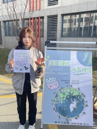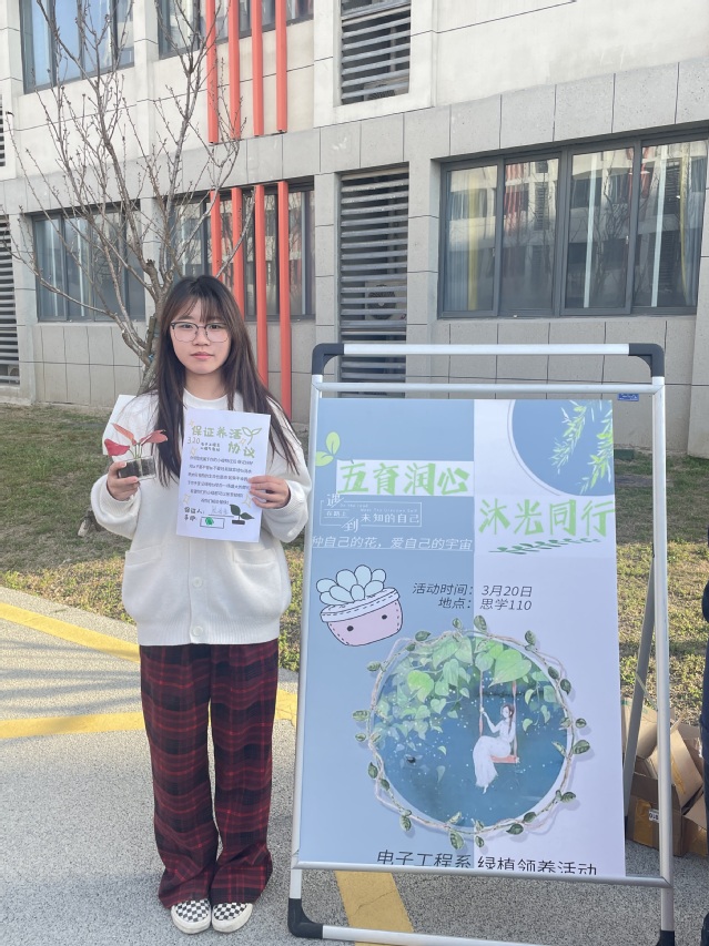 为引导同学们关注心理健康,培养他们积极向上的人生态度,更好地推动我系学生的心理健康工作,促进学生健康成长。电子工程系心理气象站以3·20心理健康教育周为契机开展植物领养主题活动,3月20日,系心理气象站在静思苑楼下举办“五育润心、沐光同行”植物领养活动活动,站内全体成员和其他感兴趣的小伙伴们都参与到了本次活动中。