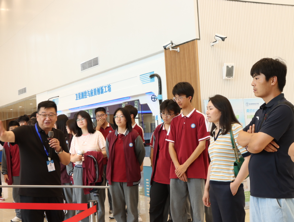 下午13:30,新港中专师生在我校志愿者引导下开启参观之旅。蓝岛创客中心内,候老师带领学生探秘卫星地面接收站实验室与卫星测控中心。通过信号接收模拟装置演示与卫星运行控制互动体验,同学们直观感受“航天级”实践教学场景。当看到我校学生自主设计的卫星火箭模型、3D打印智能设备时,来访师生纷纷驻足拍照,点赞创客教育成果。