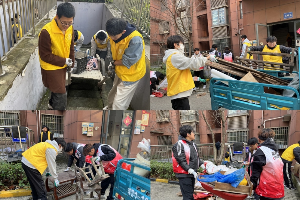 完成地下室清理后,同学们又贴心地将老人们不便处理的杂物一件件稳稳搬到家门口,方便老人取用整理。其间,大家相互搭把手、传物件,接力式的配合尽显默契,遇到重物,男生主动多承担,女生则帮忙维持搬运路线顺畅,团队协作行云流水。