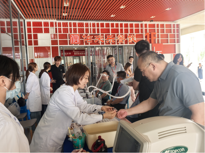 活动现场,南京爱尔古柏医院的专业医疗团队为师生带来全方位的眼科健康服务。义诊区域内,眼科医生们借助先进的检查设备,为师生们进行视力检测、眼底检查等多项眼科检查,耐心解答大家关于近视防控、眼部疾病预防等方面的疑问,并给予个性化的护眼建议。眼镜清洗服务点前,师生们有序排队,将自己的眼镜交给工作人员。专业的清洗设备配合细致的操作,让眼镜焕然一新。干眼雾化体验区更是备受欢迎,不少长期使用电子设备、眼睛容易疲劳干涩的师生,通过雾化治疗,缓解了眼部不适,直呼“眼睛清爽多了”。