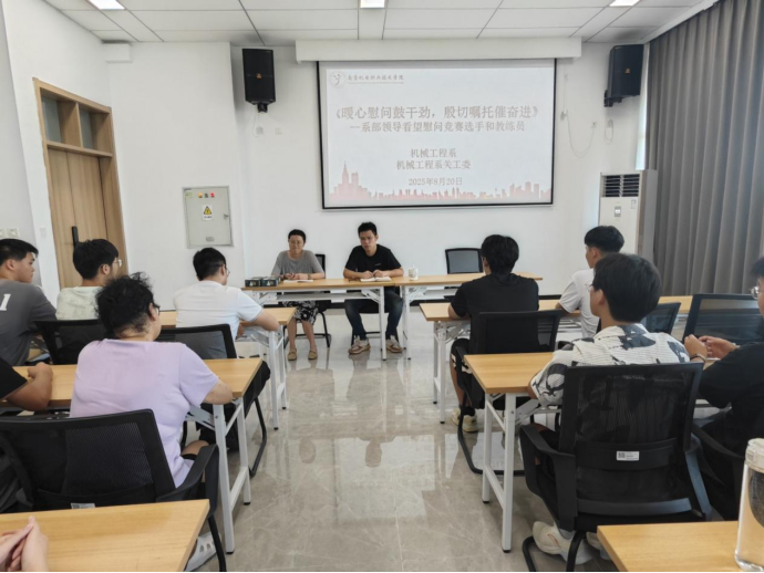 为切实鼓舞技能竞赛备赛团队队员士气,2025年8月20日,机械工程系关工委领导深入实训场地,看望慰问正在紧张备赛的技能竞赛队队员及教练员,并召开专题座谈会。