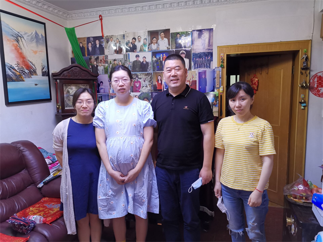 慰问组首先去看望了在家待产的王潇然老师,李杰书记嘱咐她在家要注意休息和安全,保重身体健康,不要有后顾之忧,安心在家待产。