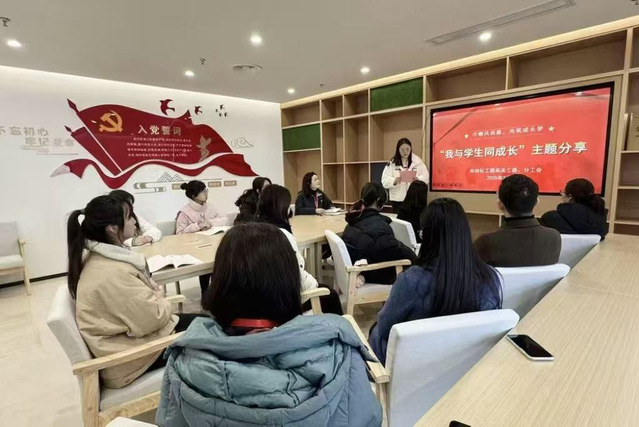 学校开展了“我与学生同成长”主题分享活动。叶泉、武建卫、于靖欢、俞青四位女教师,与学生党员、入党积极分子代表齐聚一堂,分享自己凭借扎实学识教书育人、怀揣仁爱之心关爱学生的动人故事。在热烈的互动交流中,师生之间的情感共鸣不断深化,劳模精神、劳动精神、工匠精神也在校园里深深扎根,激励着每一个人努力奋进。
