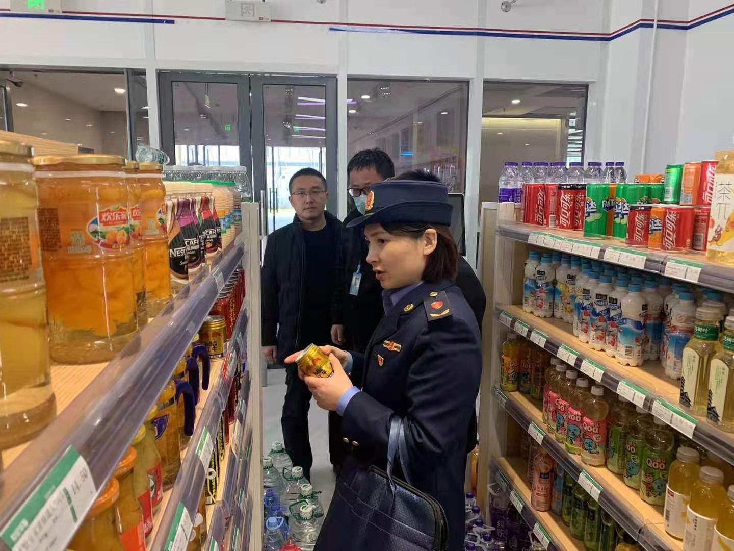 2021年3月23日上午,高淳区市场监督局开发区分局张晶局长一行检查组,对开元经营单位食品安全进行检查,后勤处周志刚处长陪同检查。