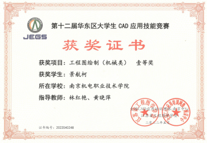 经过多年探索与实践,《计算机辅助设计》课程思政育人成效显著,赢得了同行和学生的高度认可。近五年学生积极参加华东区大学生CAD应用技能竞赛,获得工程图绘制赛项一等奖3项、二等奖18项、三等奖34项;参加“高教杯”全国大学生先进成图技术与产品信息建模创新大赛,获得一等奖1项、二等奖3项、三等奖11项。每年每个班约有80%的同学参加CAD中级考证,考试通过率100%,顺利获得 AutoCAD 证书。
