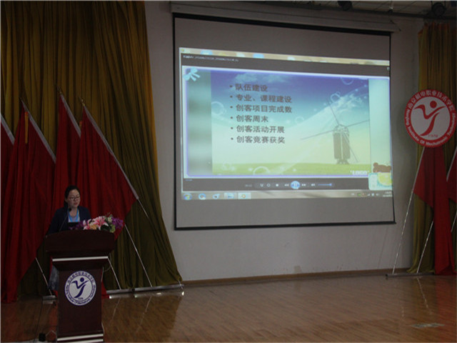 我系佟静副主任,生动精彩的分享了系部一年以来在师资队伍建设、专业课程建设、创客活动上所取得的各项成绩,付出终有收获,最终我系荣获开元创客分享汇第一名的好成绩,这是学院以及广大的师生对我系部一年以来工作的肯定和鼓励,我系部必将再接再厉,为学院建设贡献最大的力量。