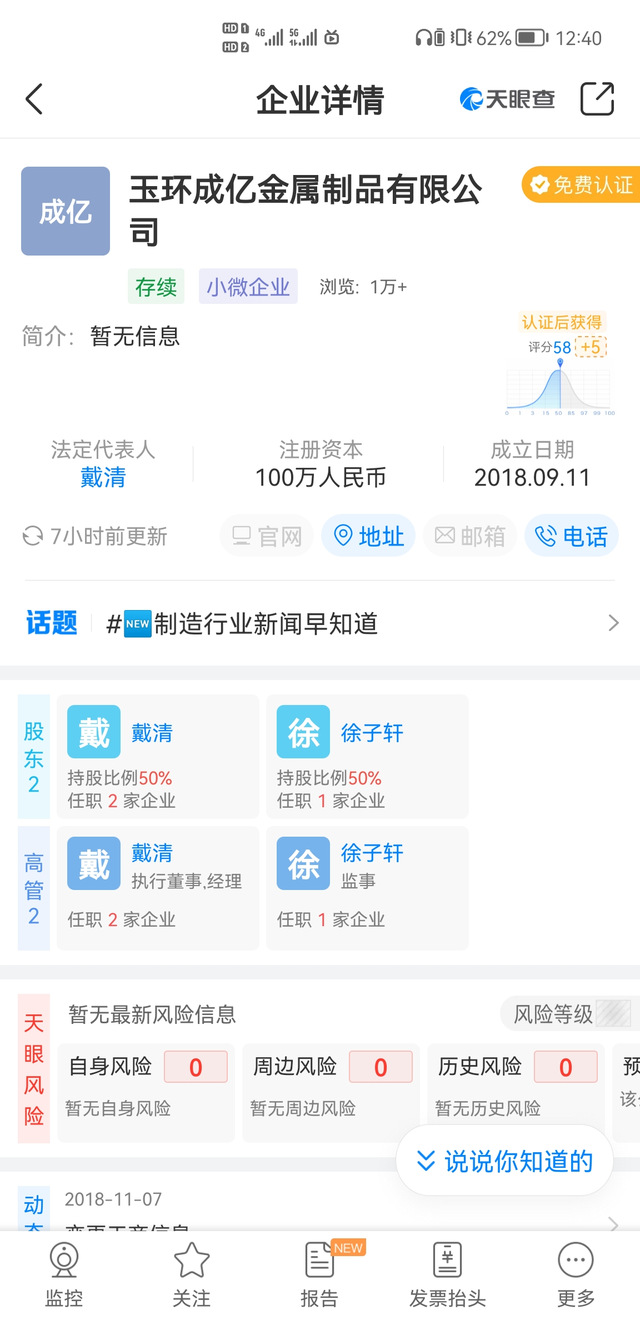 2021年7月—至今:玉环成亿金属制品有限公司 监事