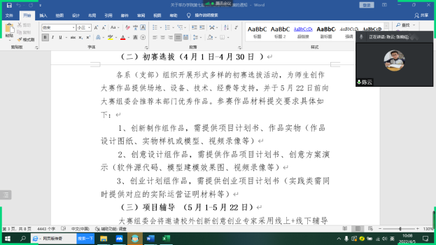 为组织专业师生更好地参与学院第七届“冠盛杯”创新创意创业大赛、在做好疫情防控的同时落实好系部初赛工作,2022年4月5日上午,机械制造及自动化教研室全体成员通过腾讯会议召开了主题为“三创大赛组织开展”的教研活动,旨在讨论专业班主任如何带领班级学生创作更多的优秀创客作品,本次会议由陆晨芳老师主持。