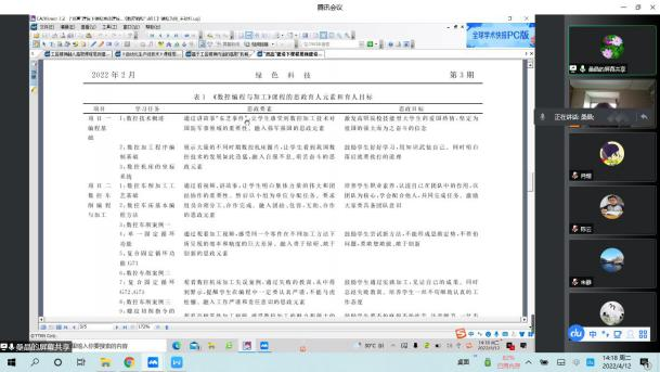 为结合专业特色,将“思政内容”融入专业人才培养方案,2022年4月12日下午,机械制造及自动化教研室全体成员通过腾讯会议召开了主题为“人才培养与思政建设相融合”的教研活动,旨在讨论如何将思政元素融入人才培养方案,本次会议由桑晶老师和陆晨芳老师主持。